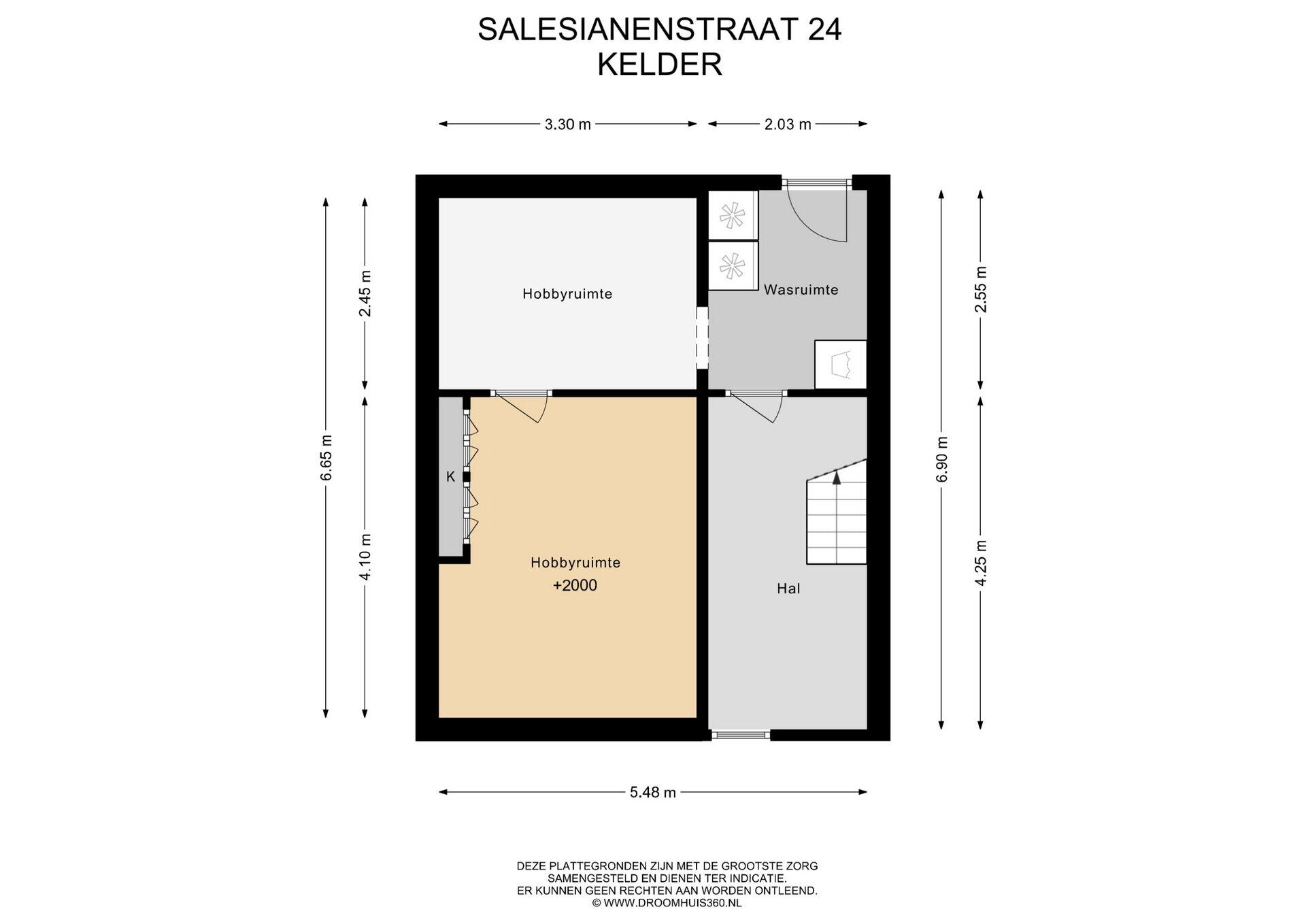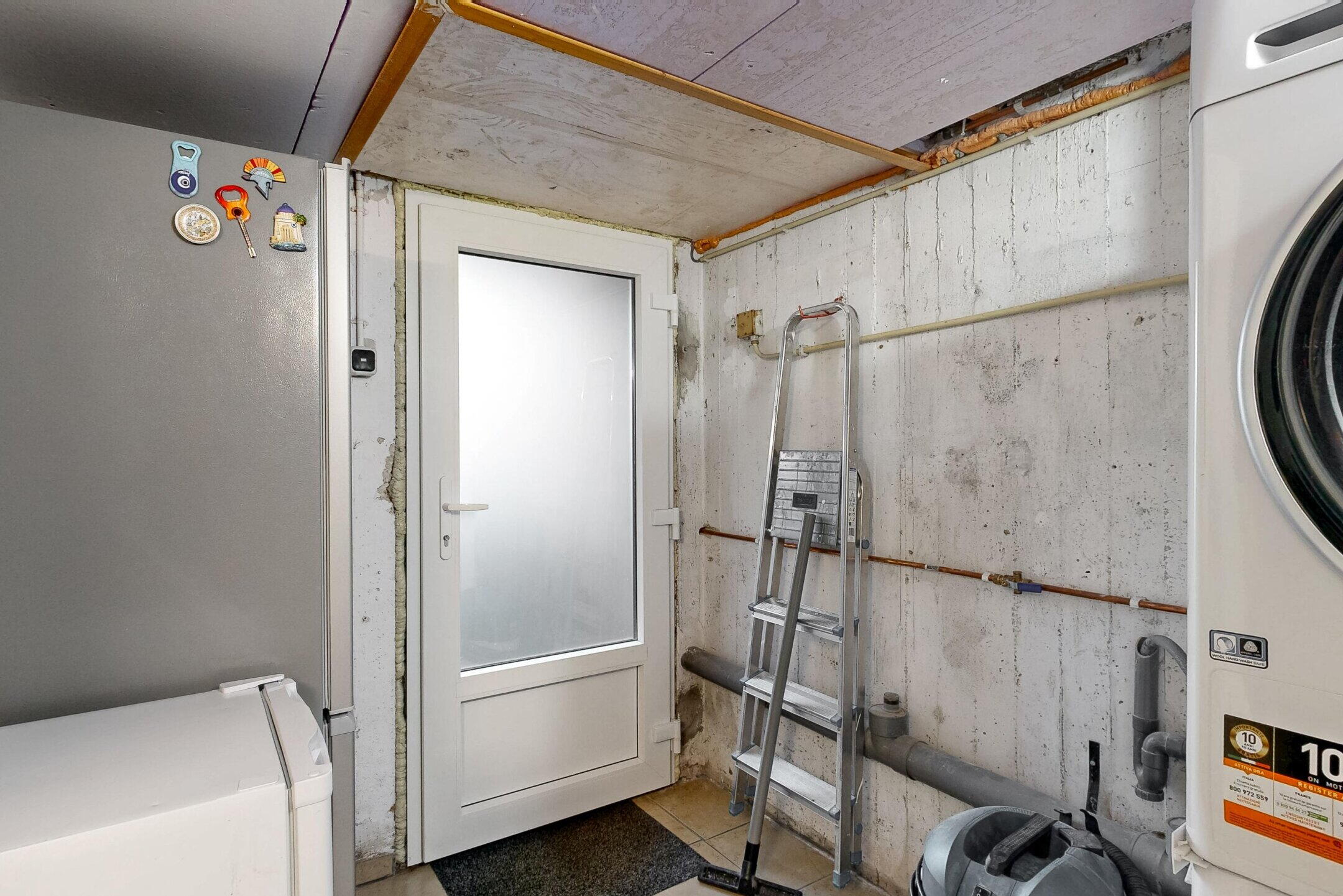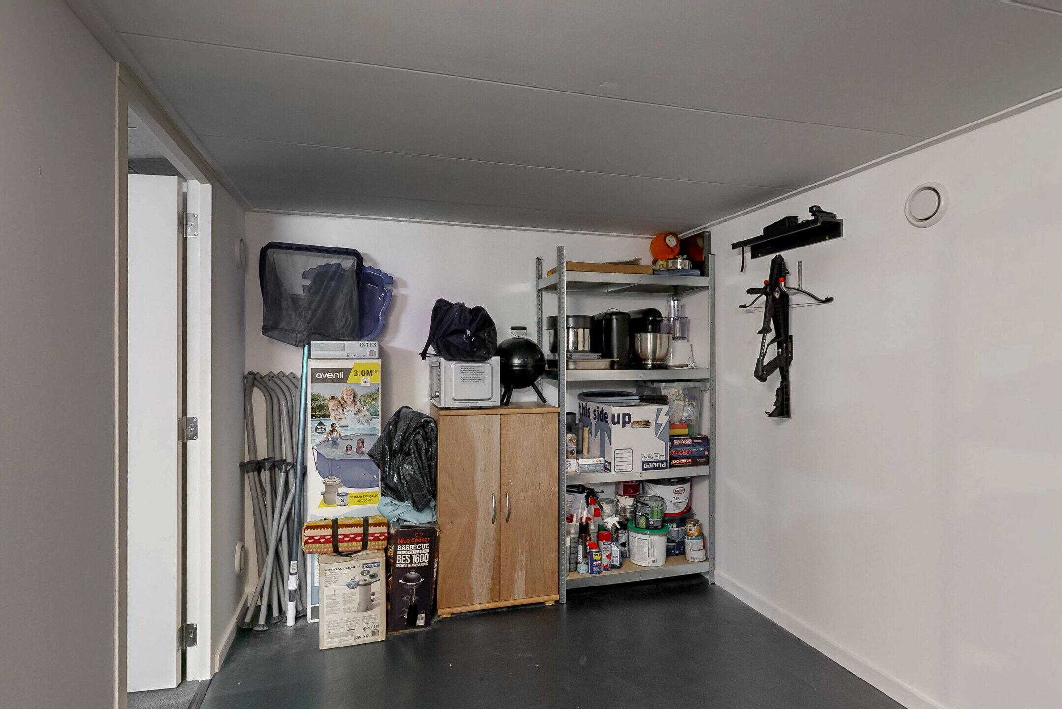 In de kelder bevindt naast deze twee hobbyruimtes, ook nog een fijne wasruimte van ca. 5 m², waar ook een aparte deur en trap naar achterom is en dan is er nog een hal/bergruimte van ca. 9 m² waar ook de vaste trap naar de hal/gang op begane grond is.
